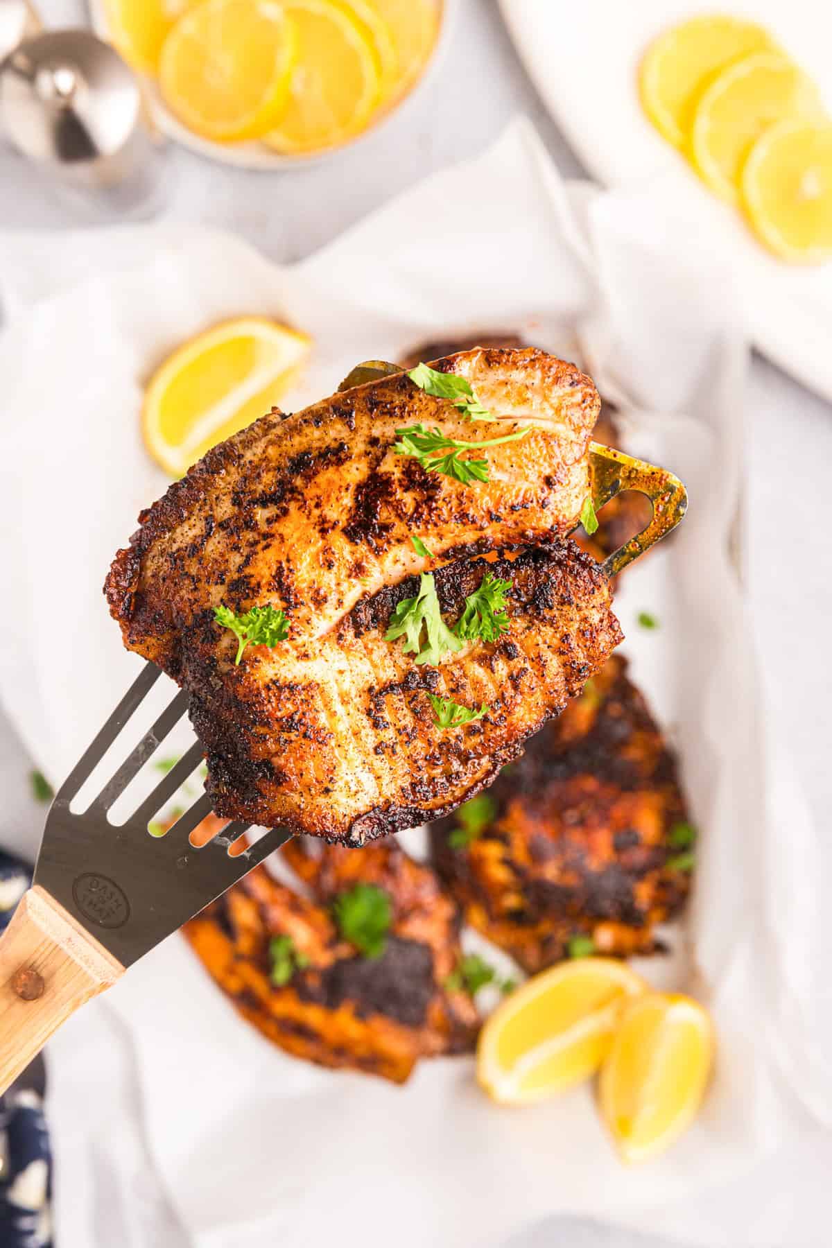You need to make sure that your flat top grill is not too hot and is also greased very well. Blackstone blackened fish will stick pretty quickly if cooked at too high of a temperature or on an ungreased surface. Use butter, olive oil, or avocado oil for the best flavor and best results for a non-stick surface.