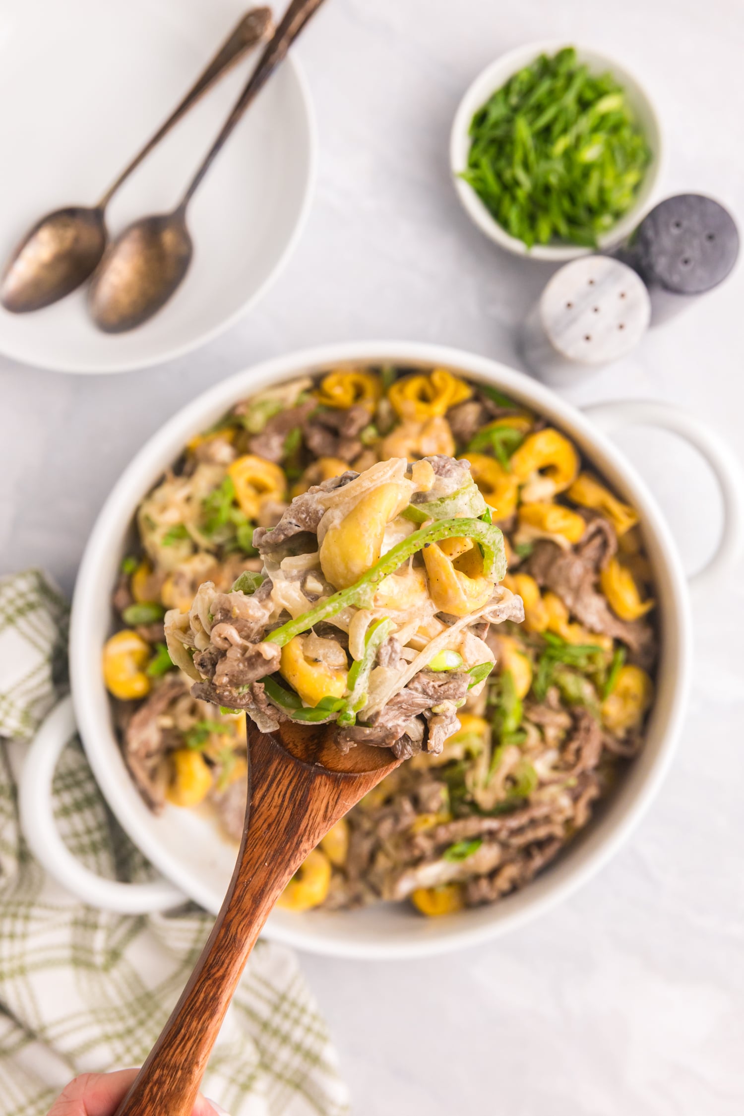 Cheese filled tortellini and savory Philly cheesesteak combine to make a seriously great dish. Filling, comforting and so tasty, this is an easy dish you’re going to make over and over again.