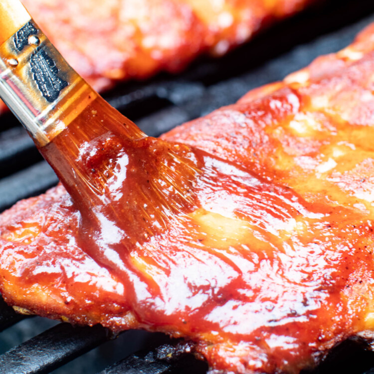 - After 2 hours, remove the ribs from the smoker and remove foil. Coat ribs with finishing sauce and place back on the smoker for 1 hour.