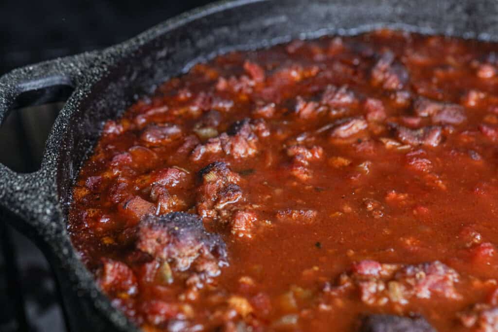 - Add the rest of the ingredients to the dutch oven and stir to combine. Close the lid and let smoke for up to 3 more hours, stirring every 30 minutes or so. The longer it cooks, the heavier the smoke flavor will be.